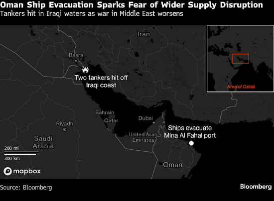 这一全球原油基准价格一度大涨10%,至每桶101.59美元,美国西德克萨斯中质原油则飙升至近96美元。阿曼已将霍尔木兹海峡外重要出口码头的所有船只撤离,伊拉克水域发生两艘油轮遇袭事件,凸显出冲突对该地区造成的广泛影响,也盖过了国际能源署创纪录释放石油储备以试图平抑油价的效果。